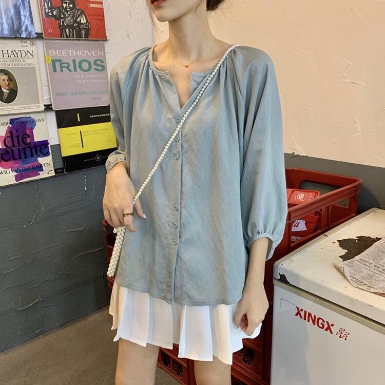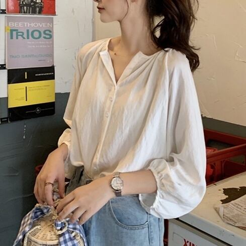 2color レディース トップス シャツ ブラウス ハーフオープンカラー 7分丈 長そで 長袖 シアー フェミニン ボリューム袖 ふんわり 抜け感 シンプル 大人カジュアル こなれ感 きれいめ キレイめ スタイリッシュ おしゃれ オシャレ お洒落 春夏 春 夏 秋 冬 ママ 20代 30代 40代 デート お出かけ 普段使い 韓国 トレンド かわいい 可愛い 大人 大人女子 大人かわいい 大人可愛い 通学 仕事 通勤 デイリー