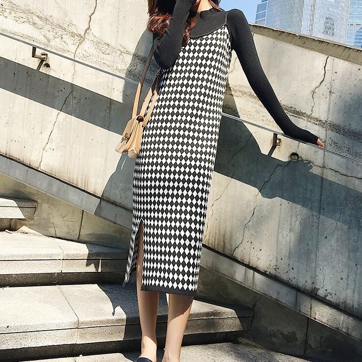 2color レディース セット セットアップ set 2点セット セパレイト セパレート トップス リブニット 長袖 長そで ワンピース ロングワンピース スリット スリット入り ロング丈 膝下 キャミソール キャミワンピ チェック柄 チェック 大人カジュアル カジュアル 華やか おしゃれ オシャレ お洒落 春夏 春 夏 秋 冬 秋冬 ママ 20代 30代 40代 デート お出かけ 普段使い 韓国 トレンド かわいい 可愛い 大人 大人女子 大人かわいい 大人可愛い 休日 オフ デイリー 旅行 海外旅行