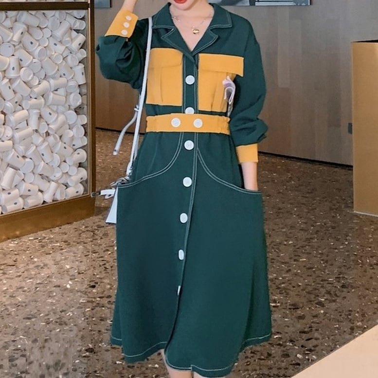 2color レディース 配色ワンピース ドレス サファリワンピース オープンカラーウエストマークバイカラーシャツワンピース 開襟シャツポケット付きボタンデザインロングワンピース ワンピース dress ひざ下 ロング ミディアム丈 長袖 襟付き フレア ウエストマーク エレガント 大人可愛い きれいめ 華やか 上品 レトロ キュート ガーリー 高見え おしゃれ オシャレ お洒落 春夏 春 夏 秋冬 秋 冬 オフィス 通勤 通学 パーティー 二次会 デート お出かけ 普段使い 大人 かわいい トレンド