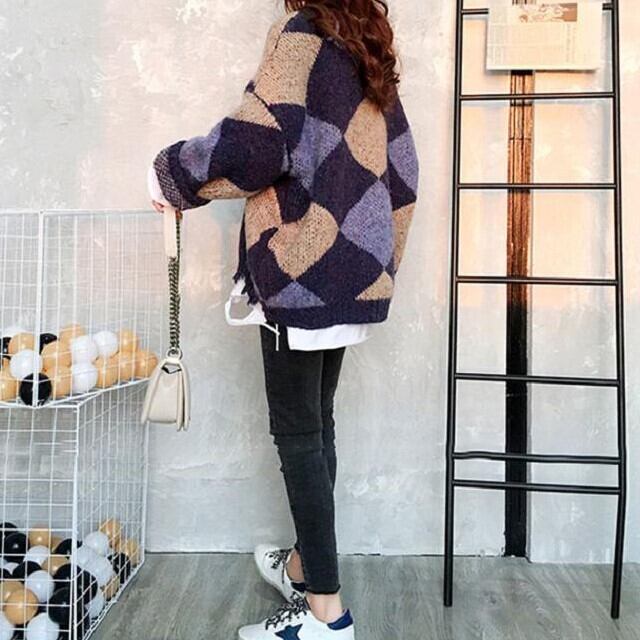 大きめのチェックとざっくりとしたデザインが可愛いニットです。