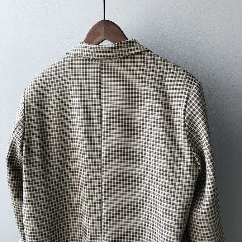 今っぽいゆるシルエットでこなれ感たっぷりのジャケット。細やかなガンクラブチェック柄でクラシックなスタイルを堪能できます。シンプルなカットソーの上からコートのようにラフに羽織るのがおすすめ