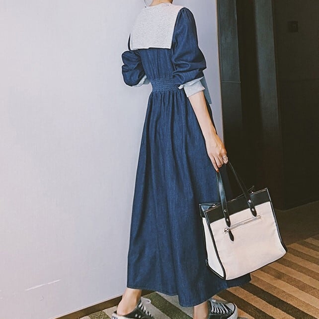 レディース ワンピース デニムワンピース フレアワンピース ひざ下 ひざ下ワンピース 長袖 ラウンドネック カーデ風ショール付き Aライン カジュアル 大人カジュアル おしゃれ オシャレ お洒落 春夏 春 夏 秋冬 秋 冬 ママ ママコーデ ママファッション 20代 30代 40代 デート お出かけ 普段使い 韓国 トレンド かわいい 可愛い 大人 大人女子 大人かわいい 大人可愛い オフィス 仕事 通勤 通学 カジュアルコーデ デニムコーデ 秋コーデ 冬コーデ