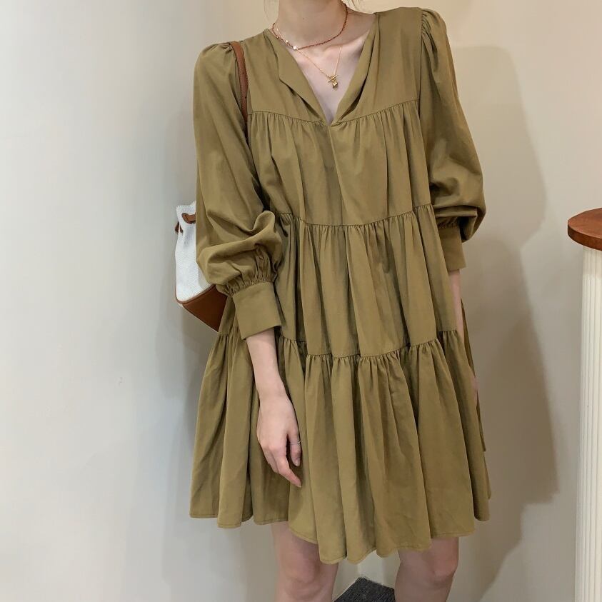 3color レディース ワンピース ミニワンピース チュニックシャツ 長袖 長そで Vカットネック パフスリーブ プリーツ ティアード 無地 シンプル カジュアル 大人カジュアル 上品 きれいめ キレイめ スタイリッシュ こなれ感 おしゃれ オシャレ お洒落 春夏 春 秋冬 秋 冬 ママ ママコーデ 20代 30代 40代 デート お出かけ デイリー 普段使い 韓国 トレンド かわいい 可愛い 大人 大人女子 大人かわいい 大人可愛い 旅行 海外 海外旅行 オフィス 通勤 通学 休日 オフ パーティー
