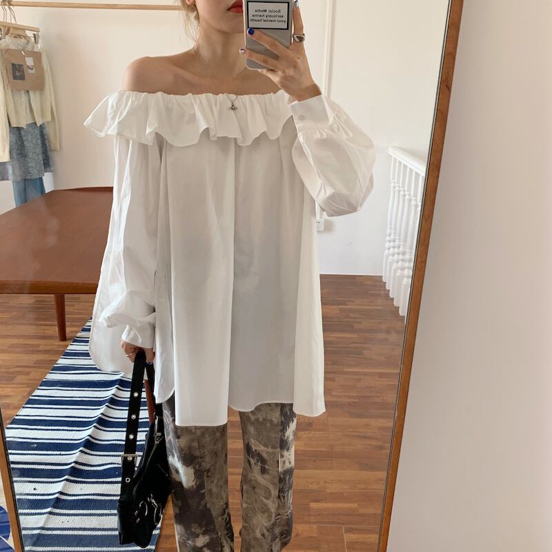 3color レディース トップス ブラウス シャツ フリル ビックカラー 2way オフショル オフショルダー 体型カバー スリット スリット入り チュニック チュニックシャツ 長袖 長そで 無地 大人カジュアル カジュアル きれいめ キレイめ 上品 デイリー フェミニン 休日 おしゃれ オシャレ お洒落 春夏 春 夏 秋冬 秋 冬 ママ ママコーデ 20代 30代 40代 デート お出かけ 普段使い 韓国 トレンド かわいい 可愛い 大人 大人女子 大人かわいい 大人可愛い 海外 旅行 通学