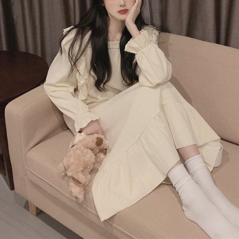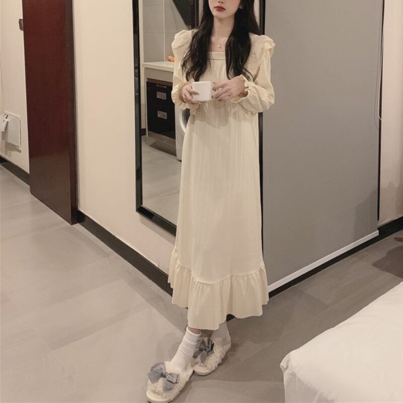 レディース ワンピース ロング丈 ネグリジェ ルームウェア 部屋着 寝巻 ナイトウェア リラックス リラックスウェア フリル リブ おしゃれ オシャレ お洒落 春夏 春 夏 秋冬 秋 冬 ママ ママコーデ 20代 30代 10代 普段使い 韓国 トレンド かわいい 可愛い 大人 大人女子 大人かわいい 大人可愛い ゆる 大きめ ラフ ルーズ ガーリー キュート ラブリー シンプル 長袖 パフスリーブ おうち時間 おうちデート モテ モテコーデ マタニティ マタニティコーデ シンプル おとなカジュアル