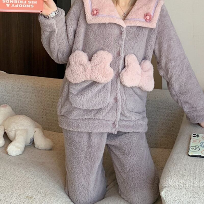 レディース ルームウェア ナイトウェア 上下セット 2点セット セットアップ ワンピース ネグリジェ 寝巻 部屋着 おうち時間 おうちコーデ おうちデート モテ 厚手 もこもこ 防寒 冬パジャマ 暖かい あったか 韓国ファッション ルーズ ラフ ビッグシルエット 大きめ おとなカジュアル キュート ラブリー ポケット 前開き ボタン ふわふわ ぬくぬく秋冬 秋 冬 ママ ママコーデ 20代 30代 40代 デート お出かけ 普段使い 韓国 トレンド かわいい 可愛い 大人かわいい 大人可愛い