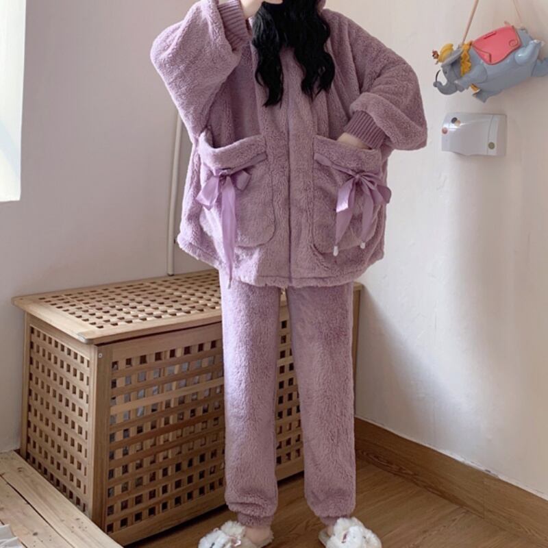 2color レディース パジャマ ルームウェア ナイトウェア リボン もこもこ ぬくぬく 防寒 あったかい 暖かい 冬パジャマ 寝巻 部屋着 くま耳 フード付き キュート ラブリー ガーリー リボン リブ 袖リブ 人気 パステルカラー リラックス リラックスウェア リラックスコーデ 10代 20代 30代 おうち時間 おうちデート おうちコーデ おしゃれ オシャレ お洒落 春夏 春 夏 秋冬 秋 冬 ママ ママコーデ 普段使い 韓国 トレンド かわいい 可愛い 大人 大人女子 大人かわいい 大人可愛い