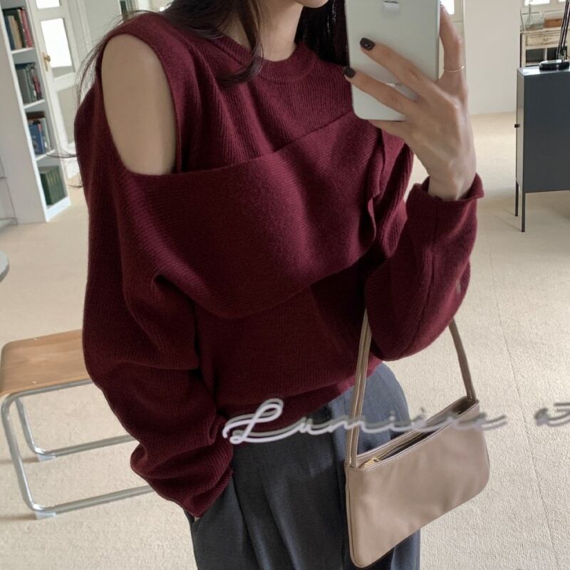 4color ニット ニットトップス トップス アシンメトリー 肌見せ 肩出し ヘルシー こなれ感 おしゃれ オシャレ お洒落 春 秋冬 秋 冬 ママ ママコーデ 20代 30代 40代 デート お出かけ 普段使い 韓国 トレンド かわいい 可愛い 大人 大人女子 大人かわいい 大人可愛い クール おとなカジュアル 大人カジュアル レイヤード ヴィンテージ 大人っぽい 女子会 女子力 デートコーデ モテ モテコーデ 長袖 切り替えデザイン ドッキングデザイン 流行 韓国ファッション 人気 主役級