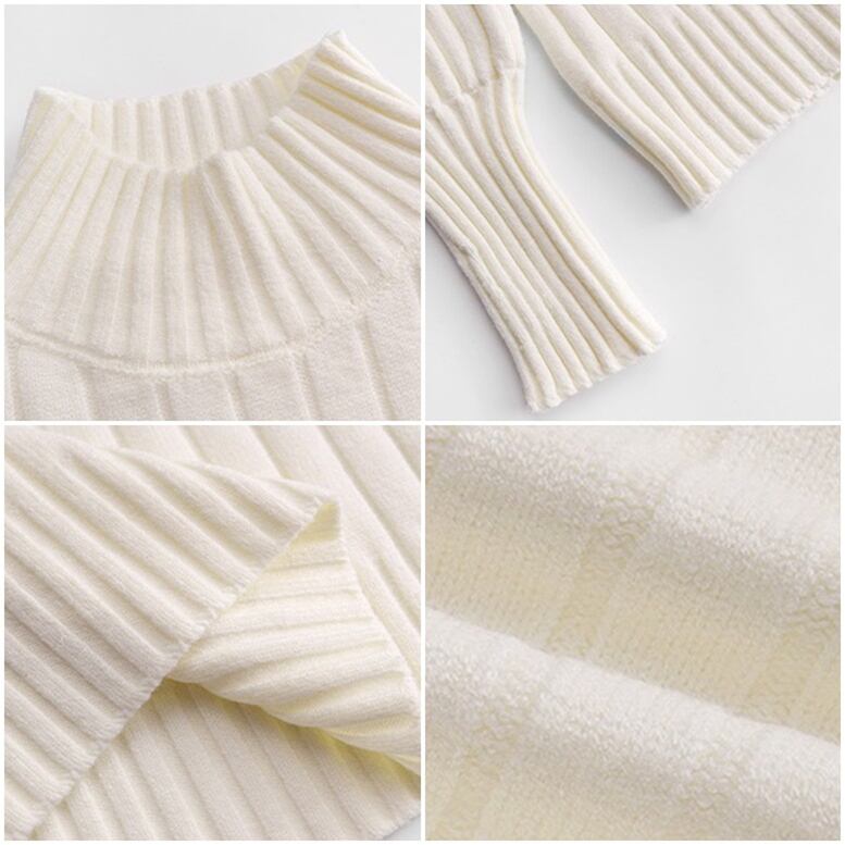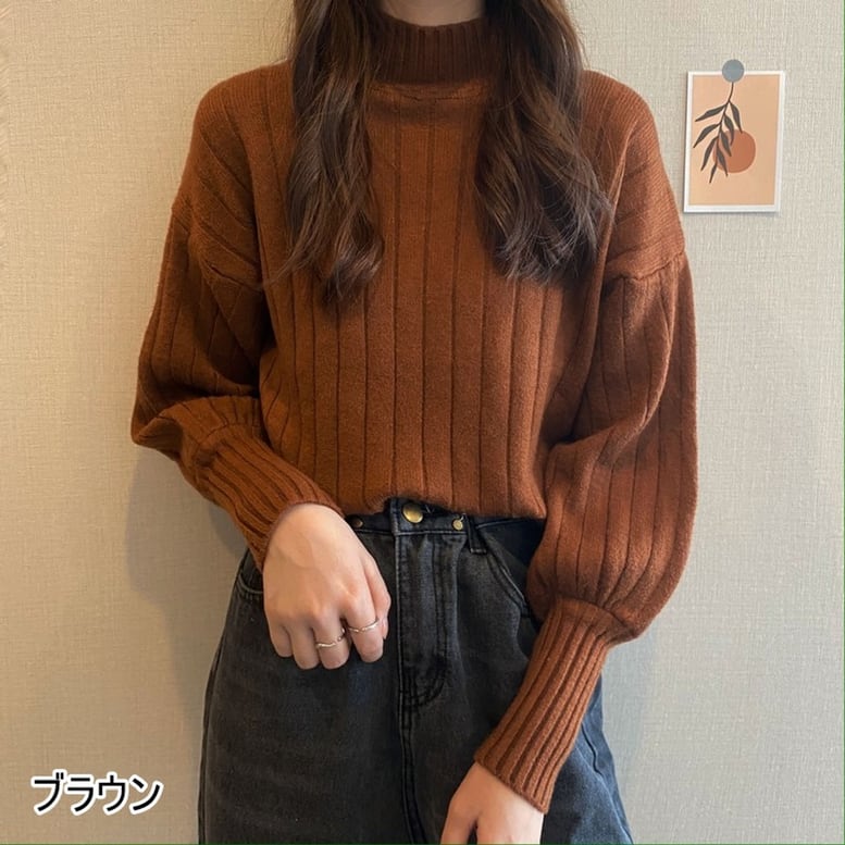 ふわっとボリューム袖でシンプルでも可愛く魅せるニット。着回し力の高いシンプルテイストで控えめなハイネックもオトナっぽくポイントです。首元と袖口はフィットしてメリハリのあるシルエットを演出します