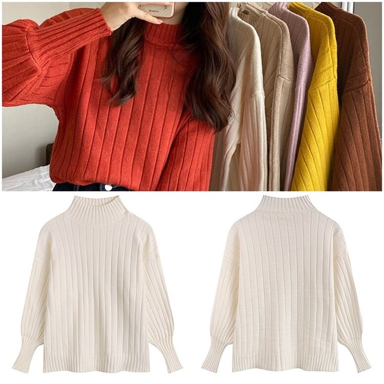 6color レディース ハイネックリブセーター ニット プルオーバー トップス リブニット リブ編みボリューム袖ニット ボトルネック 長袖 パフスリーブ バルーンスリーブ ドロップショルダー くすみカラー 春夏 春 秋冬 秋 冬 ニュアンスカラー ゆったり 大人可愛い きれいめ エレガント 上品 レトロ ガーリー ナチュラル 大人女子 ラフ ルーズ 大人 かわいい オフィス 通勤 通学 デート お出かけ お呼ばれ 女子会 デイリー 休日 重ね着 楽ちん 体型カバー 高見え 定番
