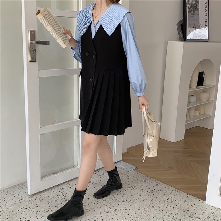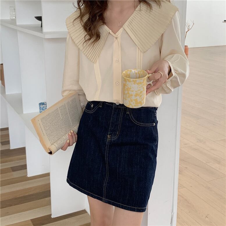 クラシカルな印象を醸し出すプリーツ襟のブラウス。可愛らしい大ぶりの襟ですがVネックが大人の要素をプラスします。ニットやワンピースとレイヤードしてもトップスの存在感が引き立ちます