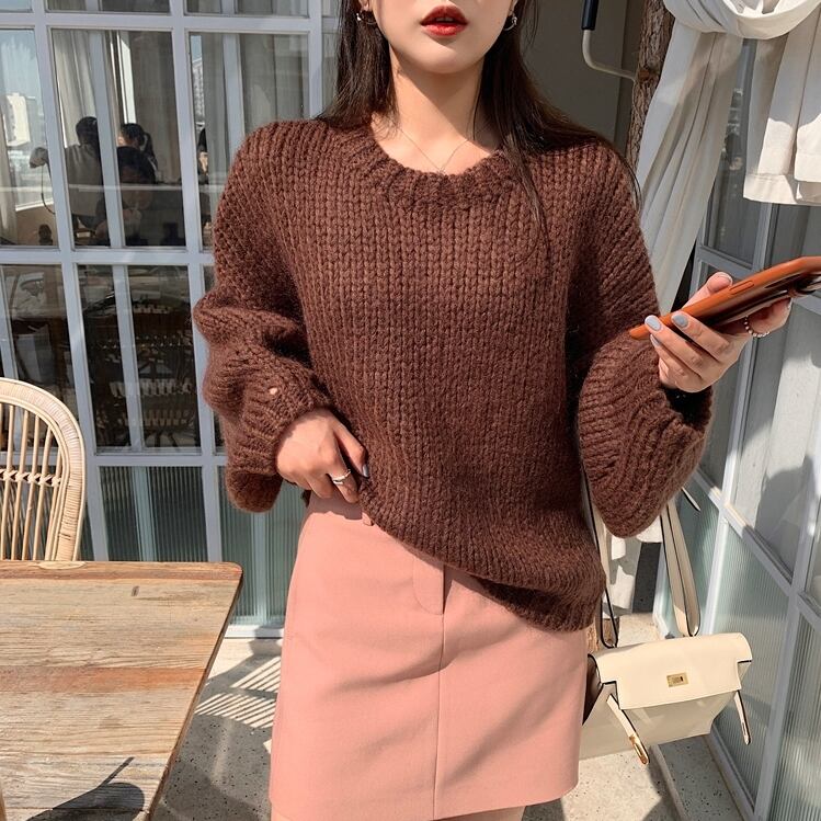 ふわりとしたソフトな風合いにざっくりしたボリュームが可愛いニット。たっぷりワイドなスリーブがキュートで華奢感を演出。ほんのり透け感がありレーヤードするのがおすすめです