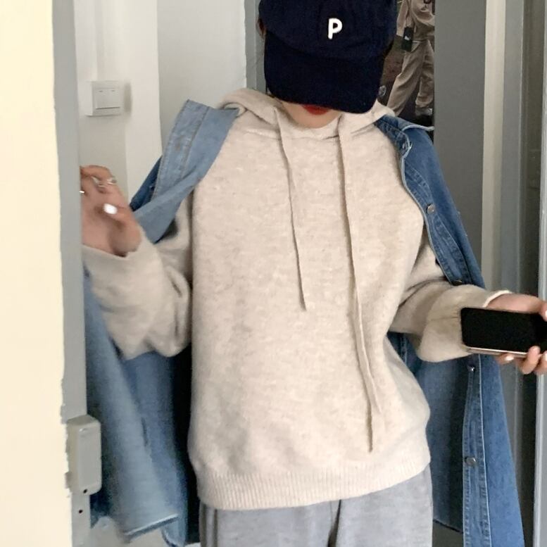 ゆったりとしたやわらかな風合いが魅力のフード付きニット。カジュアルにもきれいめにもスタイリングできるアイテムです。ワントーンなので様々なボトムスに合わせられます