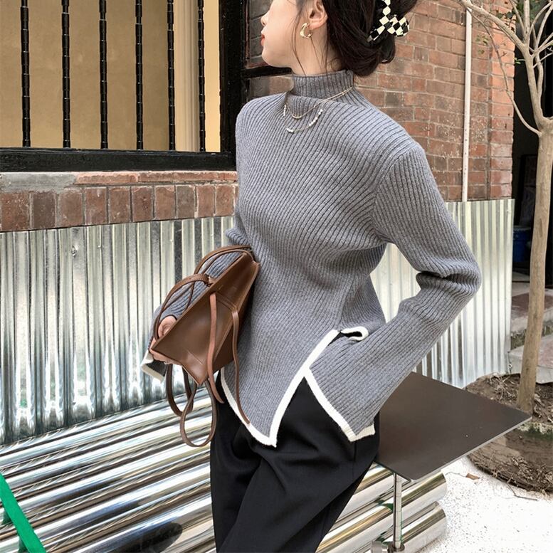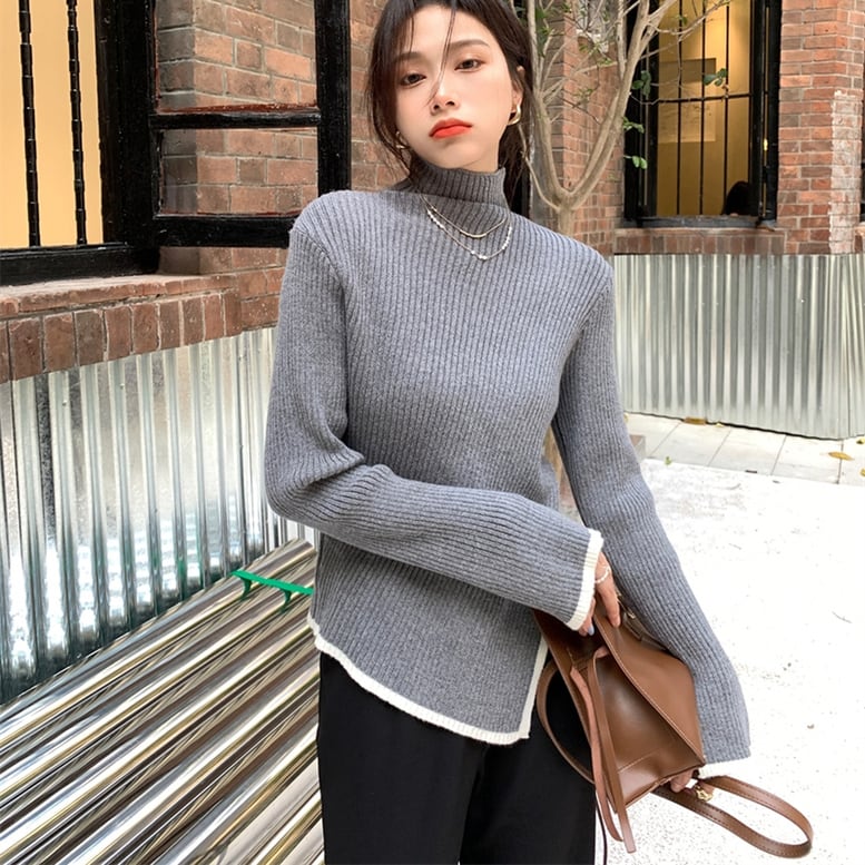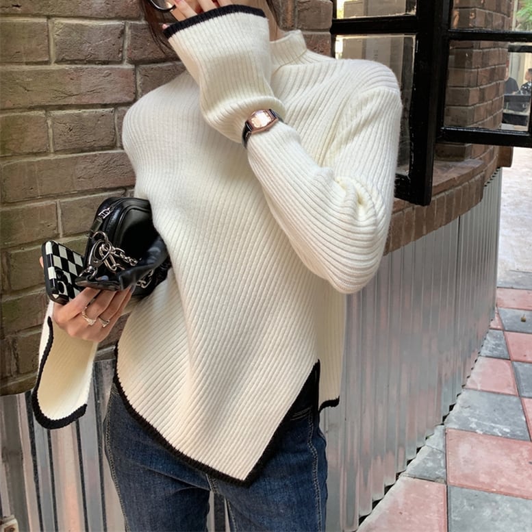 3color レディース パイピングタートルニット リブニット プルオーバー セーター トップス ハイネック 長袖 ドロップショルダー フレアスリーブ ライン バイカラー スリム 白 ホワイト 灰色 グレー 黒 ブラック 春夏 春 夏 秋冬 秋 冬 ゆったり 大人可愛い きれいめ エレガント 上品 レトロ ガーリー 大人女子 ラフ スタイリッシュ 通勤 通学 パーティー 二次会 お出かけ 女子会 デイリー 休日 重ね着 楽ちん 体型カバー 二の腕カバー インスタ映え トレンド