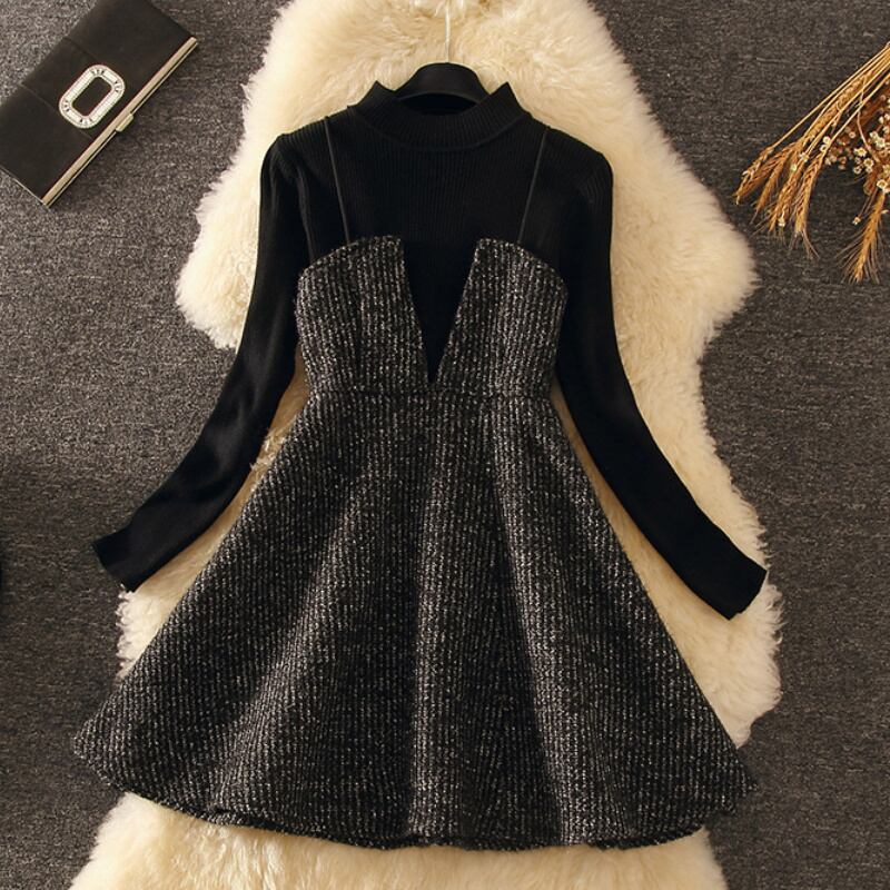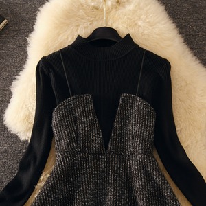 ニットトップスとキャミワンピースのセットアップ。セットで簡単にオシャレに見せてくれる便利アイテム。友達と食事やデートに使いたい可愛らしいデザイン。