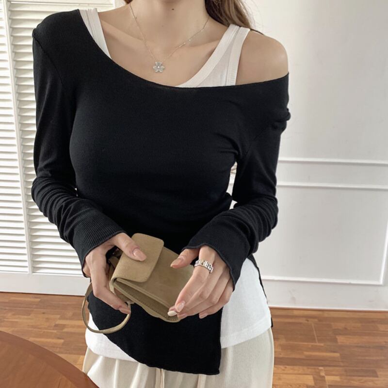 デコルテラインを綺麗に見せてくれるトップス。お持ちのアイテムとコーディネートしやすくトレンド押さえたコーデが出来るアイテム。