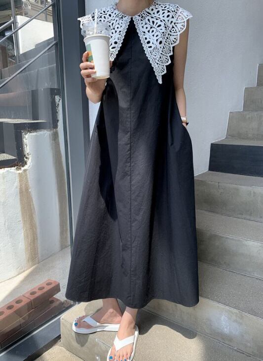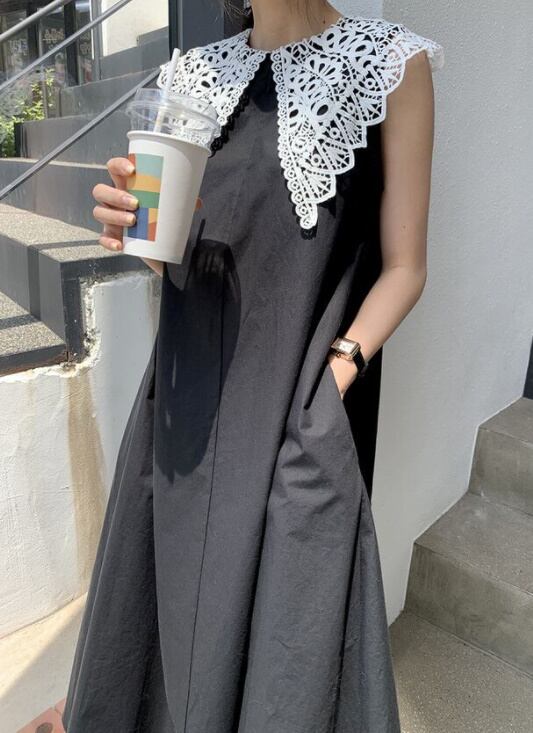 2color レディース ワンピース ノースリーブ 襟 ブラック パープル お洒落 春夏 ママ 20代 30代 40代 デート お出かけ 普段使い 韓国 トレンド 可愛い 大人女子 大人可愛い 大人カジュアル カジュアル レトロ ガーリー 上品 きれいめ エレガント オフィス きれいめ 通勤 通学 デイリー 体系カバー 二の腕カバー モテコーデ