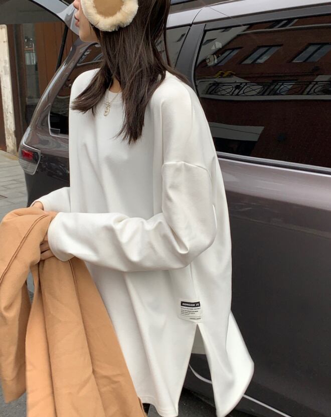 長め丈のラフトップス。飽きのこないデザインで、カジュアルスタイルを楽しめます。