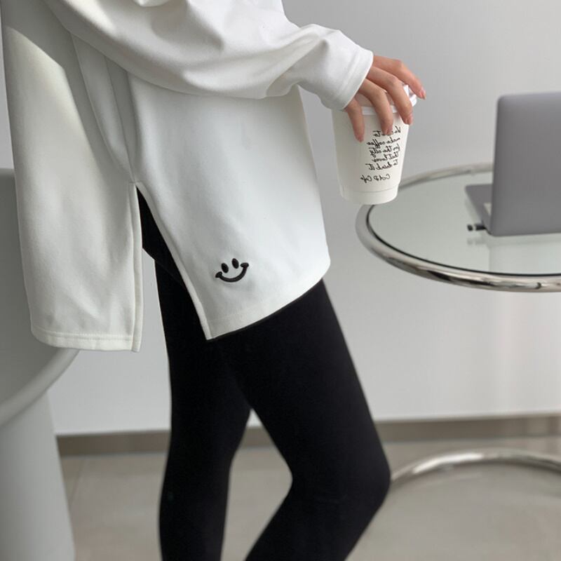 2color レディース カットソー Tシャツ 長袖 スマイル ホワイト ブラック お洒落 春夏 ママ 20代 30代 40代 デート お出かけ 普段使い 韓国 トレンド 可愛い 大人女子 大人可愛い 大人カジュアル カジュアル レトロ ガーリー 上品 きれいめ エレガント オフィス きれいめ 通勤 通学 デイリー 体系カバー 二の腕カバー モテコーデ