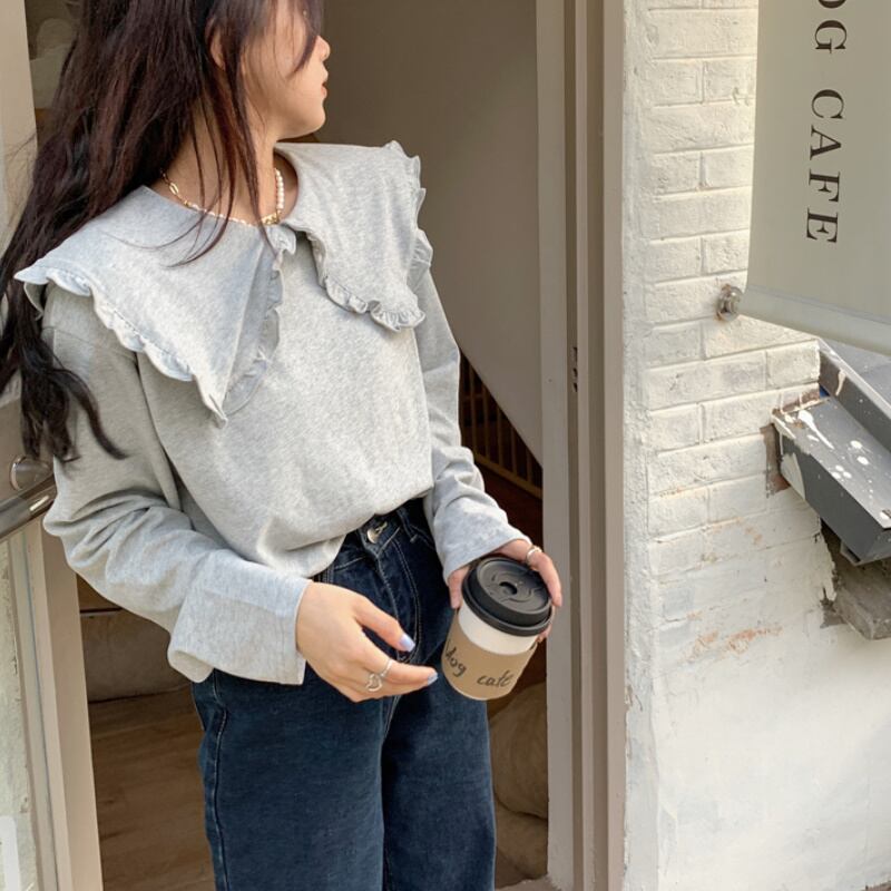 3color レディース トップス シャツ ブラウス フリル 袖あり 長袖 グレー ホワイト ブラック お洒落 おしゃれ 春夏 春 夏 秋冬 秋 冬 ママ ママコーデ 20代 30代 40代 デート お出かけ 普段使い 韓国 トレンド 可愛い 大人 大人女子 大人可愛い 大人かわいい 大人カジュアル カジュアル 旅行 海外旅行 仕事 通勤 通学 オフィス 女子会 オフ デイリー 二の腕カバー 上品 きれいめ レトロ デイリー ラフ