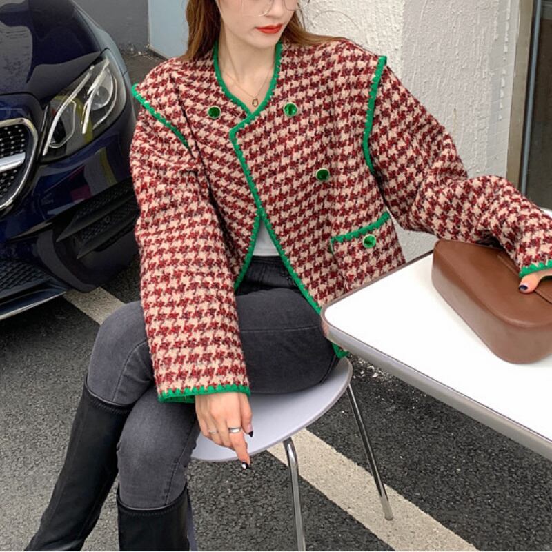 2color レディース アウター ジャケット 長袖 千鳥格子 柄 レッド ブラック お洒落 おしゃれ 秋冬 秋 冬 ママ ママコーデ 20代 30代 40代 デート お出かけ 普段使い 韓国 トレンド 可愛い 大人 大人女子 大人可愛い 大人かわいい 大人カジュアル カジュアル 旅行 海外旅行 仕事 通勤 通学 オフィス 女子会 オフ デイリー 二の腕カバー 上品 きれいめ レトロ デイリー ラフ