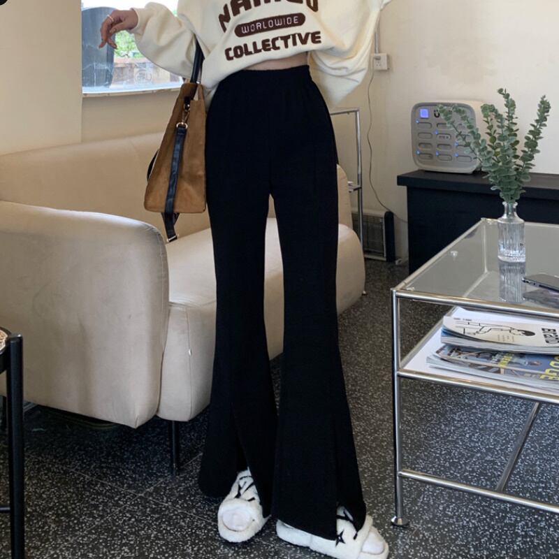スリットの入ったトレンドボトムス。通常タイプと裏起毛タイプと選んで頂けます。寒さ対策も出来る嬉しいデザイン。