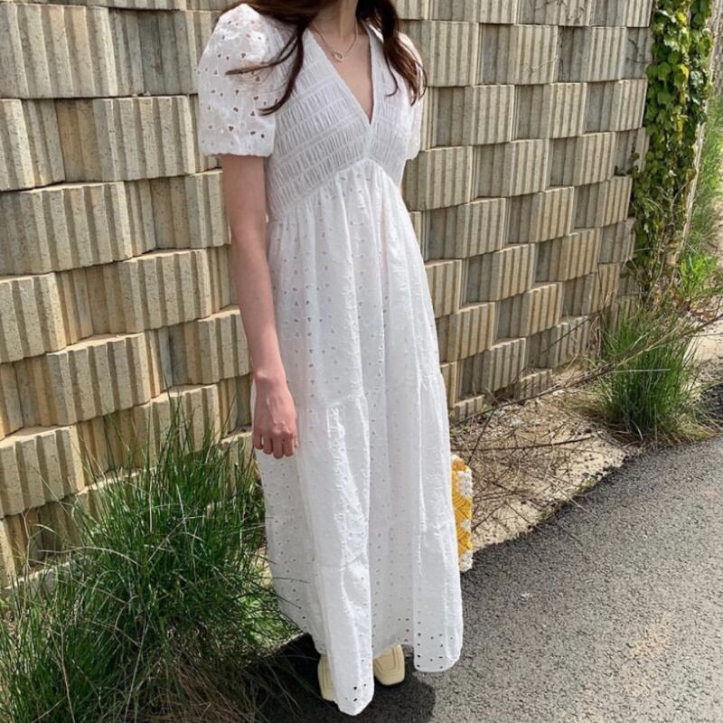 4color レディース ワンピース ロング丈 パフスリーブ グリーン ホワイト イエロー ブラック 半袖 シンプル おしゃれ オシャレ お洒落 春夏 春 ママ ママコーデ 20代 30代 40代 デート お出かけ 普段使い 韓国 トレンド 可愛い 大人 大人女子 大人可愛い 大人かわいい 大人ガーリー 大人カジュアル カジュアル 旅行 海外旅行 通勤 通学 仕事 休日 オフ 女子会 デイリー キュート レトロ 主役級
