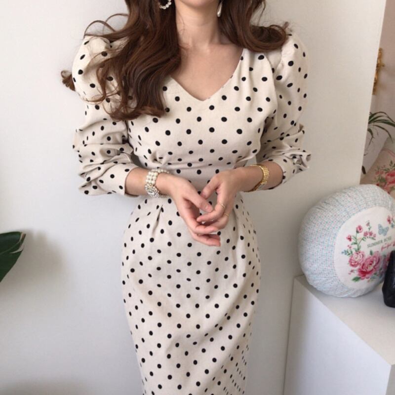 2color レディース ワンピース 膝下丈 ブラウン ブラック 長袖 ドット柄 シンプル おしゃれ オシャレ お洒落 春 秋 冬 ママ ママコーデ 20代 30代 40代 デート お出かけ 普段使い 韓国 トレンド 可愛い 大人 大人女子 大人可愛い 大人かわいい 大人ガーリー 大人カジュアル カジュアル 旅行 海外旅行 通勤 通学 仕事 休日 オフ 女子会 デイリー キュート レトロ 主役級