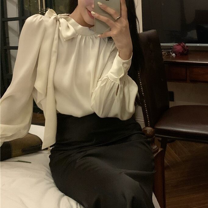 レディース トップス シャツ ブラウス シャツブラウス シフォンブラウス ボウタイブラウス ボウタイリボン パフスリーブ ボリューム袖 袖あり 長袖 透け感 ホワイト エレガント シンプル 大人 大人女子 大人フェミニン フェミニン お洒落 春夏 春 夏 秋冬 秋 ママ ママコーデ 20代 30代 40代 デート お出かけ 普段使い 韓国 トレンド 大人かわいい 大人可愛い 通勤 通学 休日 オフ 女子会 パーティー お呼ばれ 二の腕カバー きれいめ 結婚式 謝恩会 オルチャン インスタ映え 高見え