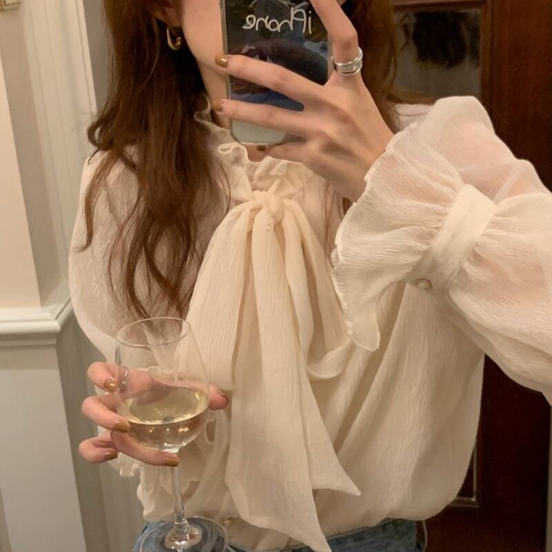 2color レディース トップス シャツ ブラウス シャツブラウス シフォンブラウス ボウタイブラウス ボウタイリボン パフスリーブ ボリューム袖 袖あり 長袖 透け感 オフホワイト ブラック ハイネック シンプル 大人 大人女子 大人フェミニン おしゃれ 春夏 春 夏 秋冬 秋 ママコーデ 20代 30代 40代 デート お出かけ 普段使い 韓国 トレンド 可愛い 大人可愛い 通勤 通学 休日 オフ 女子会 パーティー お呼ばれ 二の腕カバー エレガント 結婚式 謝恩会 きれいめ インスタ映え 高見え