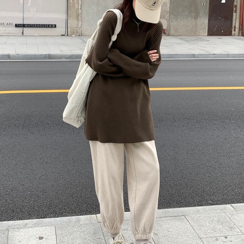 5color レディース リブニットプルオーバー セーター ラグランニット トップス ハイネック 長袖 ドロップショルダー ドルマンスリーブ チュニック丈 ロングニット サイドスリット ブラウン アイボリー ホワイト ブラック グレー 春夏 春 夏 秋冬 秋 冬 ニュアンスカラー ゆったり 大人可愛い きれいめ エレガント 上品 クラシック レトロ ガーリー 大人女子 ルーズ 通勤 通学 二次会 お出かけ デイリー 旅行 重ね着 体型カバー 二の腕カバー モテ インスタ映え トレンド