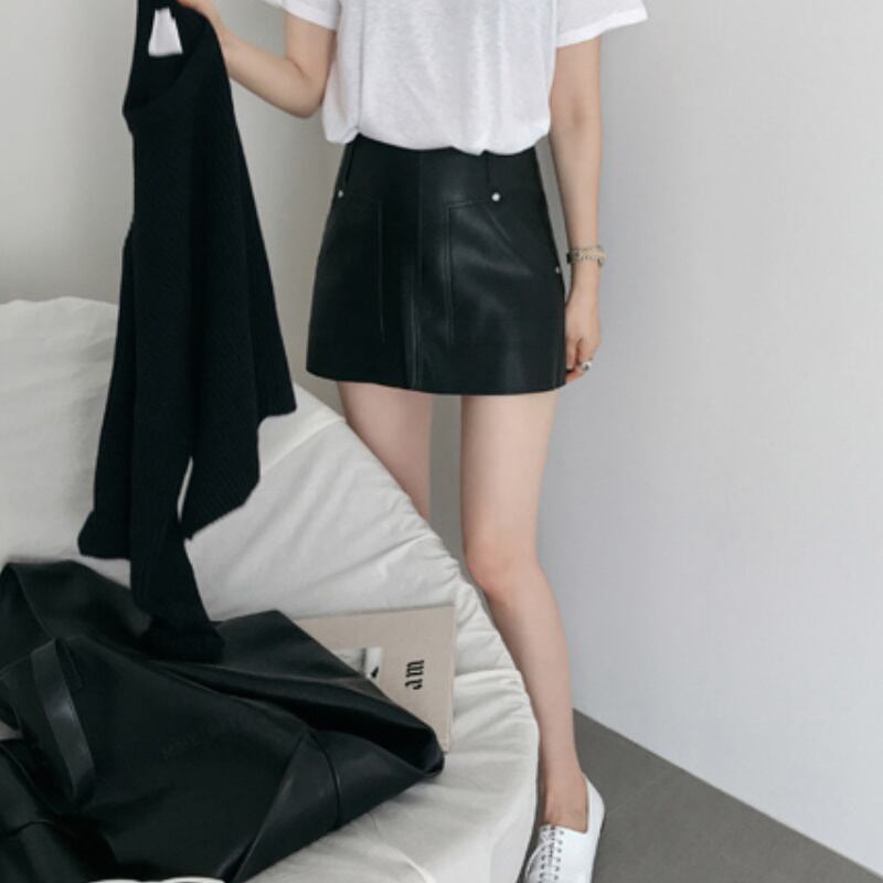 トレンド押さえたエコレザースカート。飽きのこないデザインはお持ちのアイテムと組み合わせやすく、かっこよくもかわいらしくもオシャレが出来るアイテム。