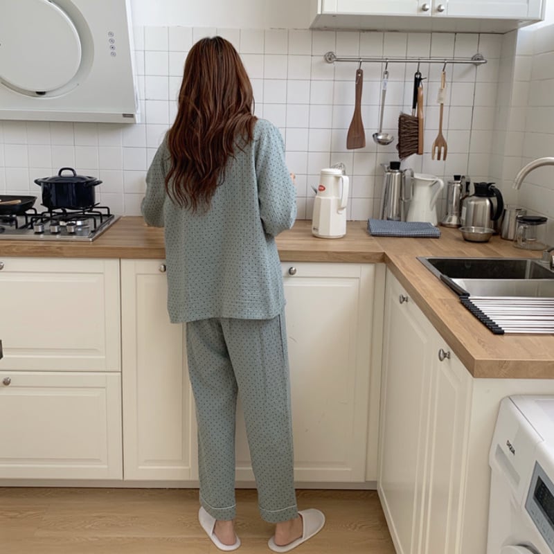 4color レディース ルームウェア セットアップ パンツ パジャマ ドット柄 ゆったり 楽ちん 体系カバー 長袖 袖あり クール ボーイッシュ メンズライク シンプル こなれ感 大人可愛い お洒落 春夏 春 秋冬 秋 冬 ママコーデ 20代 30代 40代 デート ラフ 体型カバー 普段使い 韓国 トレンド かわいい 大人 大人女子 大人可愛い 旅行 海外旅行 デイリー オフ 休日