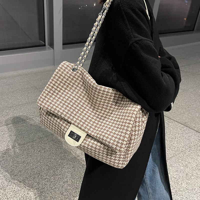 肩掛けとしてもショルダーバッグとしても使えるハンドバッグ。カジュアルにもきれいめにも活躍出来るアイテム。千鳥格子柄の可愛い大人女子必見アイテム♪