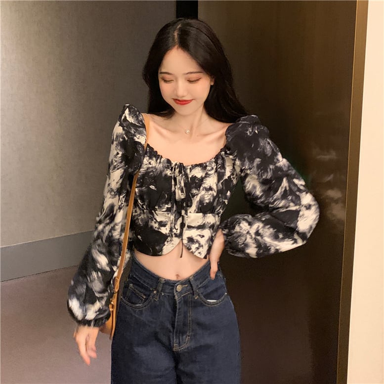 2color レディース ショートパフトップス タイダイ柄 シャツ ブラウス スクエアネック バルーンスリーブ 染め 模様 スリム ボヘミアン ハイウエスト ブラック ブルー 春夏 春 夏 秋冬 秋 冬 ニュアンスカラー ゆったり 大人可愛い きれいめ エレガント 上品 クラシック レトロ ガーリー ボタニカル ボヘミアン 大人女子 モード系 スタイリッシュ おしゃれ 通勤 通学 パーティー 二次会 お出かけ 女子会 デイリー 休日 イベント 旅行 体型カバー 二の腕カバー インスタ映え トレンド