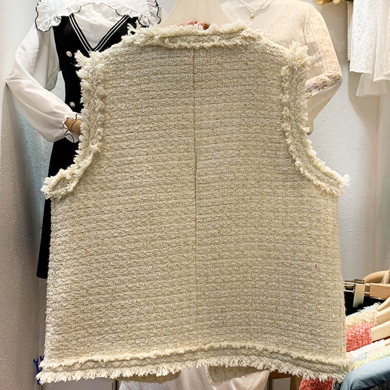 2color レディース アウター 春秋アウター ジャケット ベスト ジレ ツイードベスト ツイード ノースリーブ Vネック フリンジ 袖なし ポケット ボタンデザイン 大人カジュアル ガーリー アイボリー グレー お洒落 春夏 春 秋冬 秋 冬 ママ ママコーデ 20代 30代 40代 デート お出かけ 普段使い 韓国 トレンド かわいい 可愛い 大人 大人女子 大人かわいい 大人可愛い お呼ばれ 旅行 海外旅行 デイリー 女子会 きれいめ 上品 キレカジ 着回し レイヤード 楽ちん あったか 暖かい