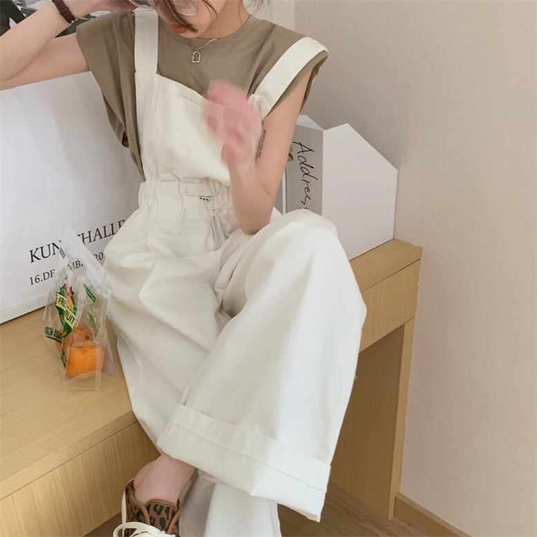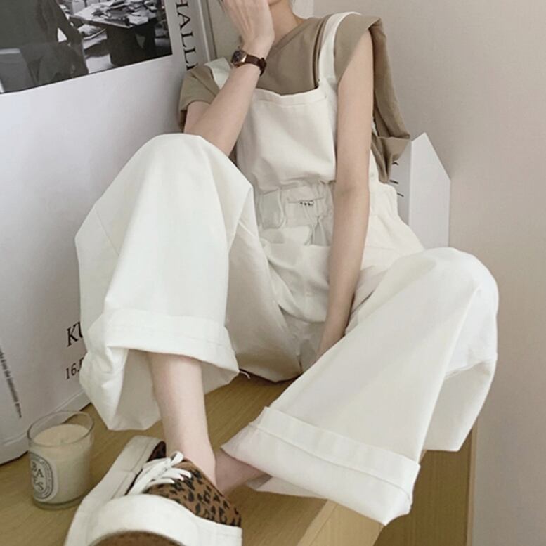 レディース サロペットパンツ オーバーオール ワイドパンツ オールインワン ウエストゴム 袖なし フレアパンツ ジャンプスーツ ハイウエスト 白 ホワイト 大人可愛い きれいめ 大人 上品 おしゃれ マニッシュ スポーティー キュート ガーリー エレガント 春 夏 秋 冬 二次会 オフィス ビジネス OL 通勤 学生 通学 デート お出かけ パーティー イベント 女子会 体型カバー オーバーサイズ ゆったり