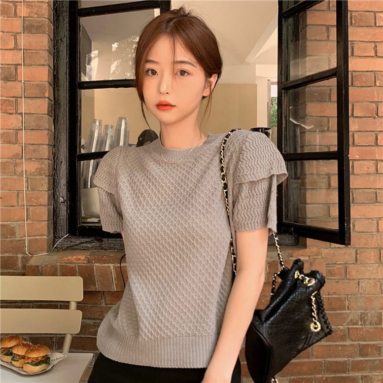 2color レディース ワッフルカットソー 半袖 ニット クルーネック パフスリーブ サマーニット 薄手 トップス プルオーバー シャツ グレー ホワイト 白 大人可愛い きれいめ 大人 上品 おしゃれ レトロ キュート ガーリー エレガント フォーマル ボタニカル 春 夏 秋 冬 二次会 オフィス ビジネス OL 通勤 学生 通学 デート お出かけ パーティー イベント 女子会 休日 体型カバー モテ ゆったり アースカラー ニュアンスカラー