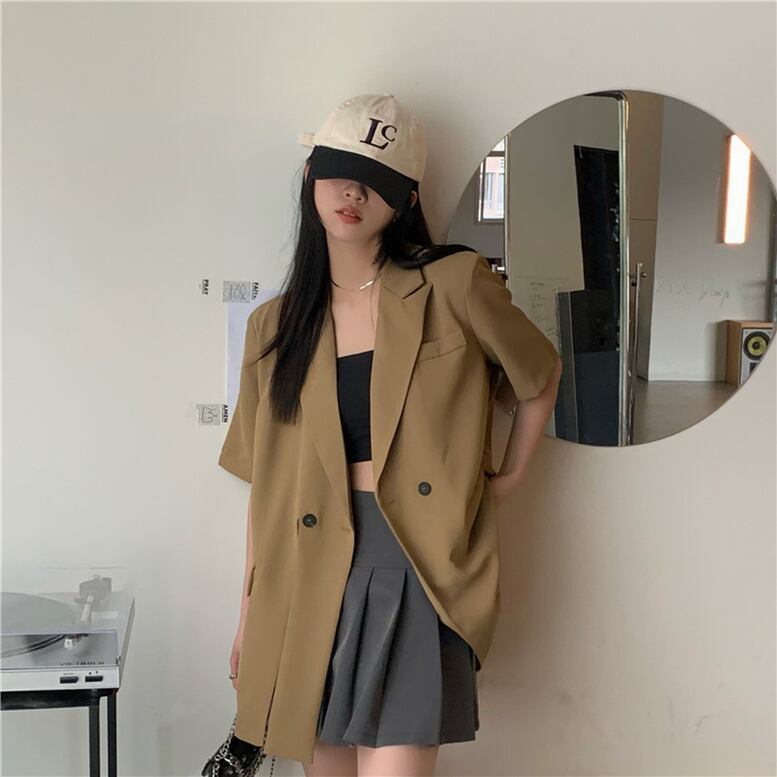 ワンサイドにさっくり入ったスリットが目を惹くテーラードジャケット。ゆったりした半袖のディティールがラフなスタイルを演出します。羽織るだけで表情豊かなコーデに仕上げてくれるアイテム