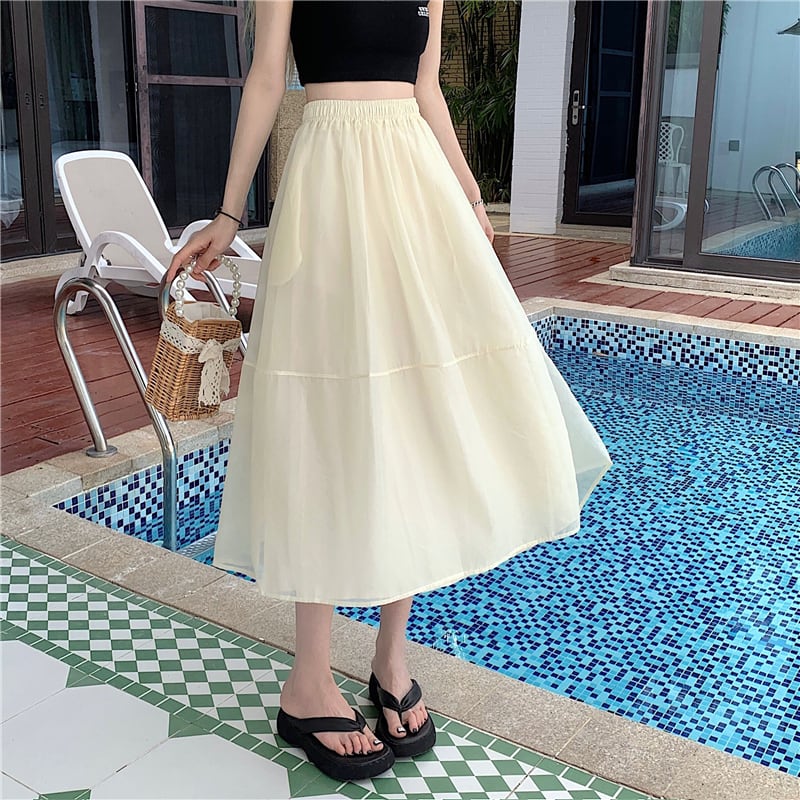 3color レディース スカート ミモレ丈スカート シアーオーガンジー シアー オーガンジー風 裏地付き シワ加工 無地 ハイウエスト ウエストゴム Aライン フレア 切り替え 細見え 楽ちん カジュアル 大人カジュアル きれいめ 上品 ブラウン ホワイト ブラック お洒落 春夏 春 夏 秋冬 秋 ママ ママコーデ 20代 30代 40代 デート お出かけ 普段使い 韓国 トレンド 可愛い 大人 大人女子 大人可愛い 通勤 通学 学生 女子会 着回し デイリー こなれ感 ラフ エレガント