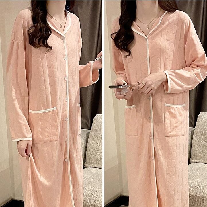 3color レディース ルームウェア 部屋着 寝巻 ナイトウェア パジャマ リラックスウェア シャツワンピース ワンピース マキシ丈 袖あり 長袖 襟付き ポケット パイピング スカラップ エンボス加工 ジャガード 幾何学 大人カジュアル シンプル 無地 ガーリー ホワイト ピンク ブルー お洒落 春夏 春 秋冬 秋 冬 ママ 20代 30代 40代 お出かけ 韓国 トレンド 大人女子 大人可愛い 旅行 お泊まり 女子会 おうち時間 体系カバー マタニティウェア 授乳服 バイカラー 暖かい