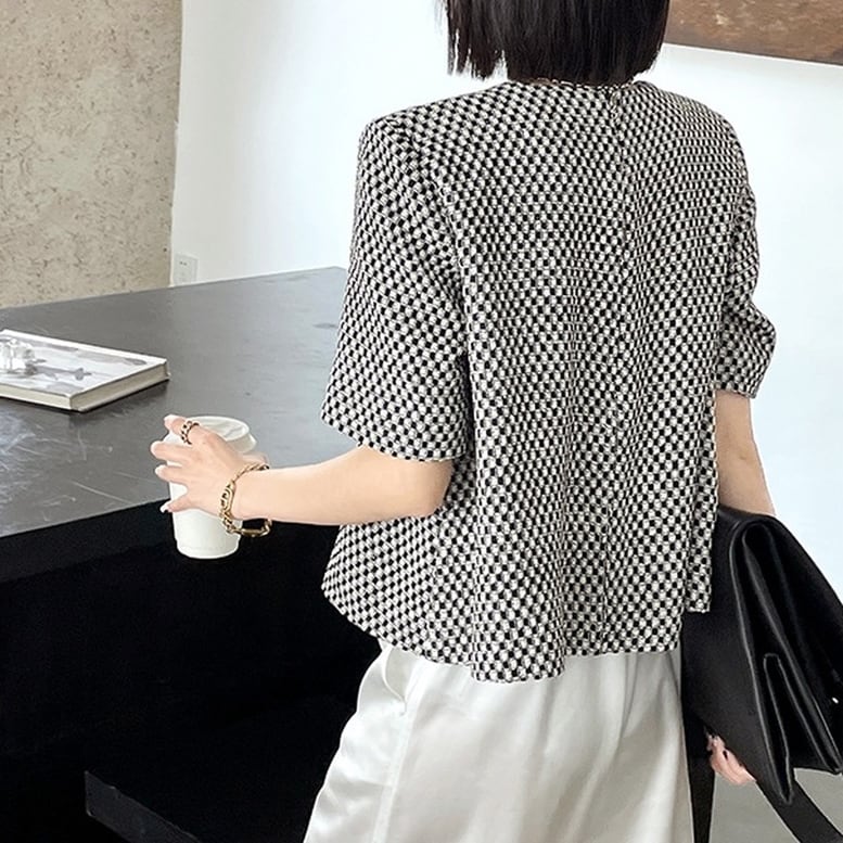 レディース カットソー トップス シャツ ツイード風 半袖 クルーネック セミワイド チェック 黒 白 ブラック ホワイト ジャガードニットソー 大人可愛い きれいめ 上品 レトロ マニッシュ キュート ガーリー ルーズ エレガント フォーマル 春 夏 秋 冬 二次会 お呼ばれ オフィス ビジネス OL 通勤 学生 通学 デート お出かけ パーティー イベント 女子会 休日 旅行 リゾート アウトドア 体型カバー モテ 普段使い 定番 トレンド ゆったり インスタ映え ニュアンスカラー 大人カラー
