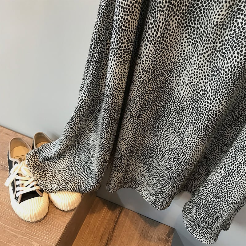 モノトーンのヒョウ柄が印象的なシフォンフレアスカート。