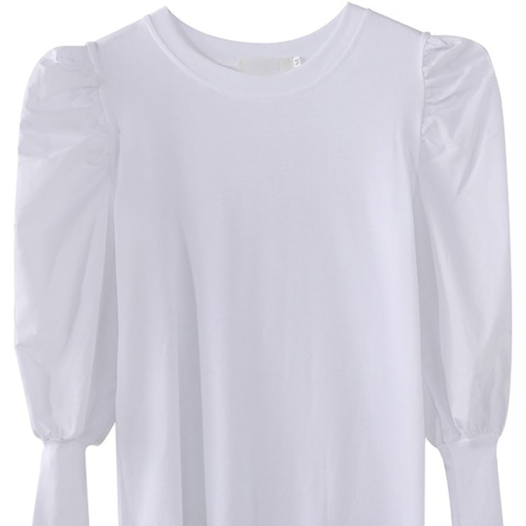 2color レディース トップス カットソー 長袖カットソー 無地 スリムフィット 切り替え 袖あり 長袖 ボリューム袖 パフスリーブ ラウンドネック 清潔感 華奢見え エレガント 大人カジュアル カジュアル フェミニン ホワイト ブラック お洒落 春夏 春 秋 ママ ママコーデ 20代 30代 40代 デート お出かけ 普段使い 韓国 トレンド 可愛い 大人 大人女子 大人可愛い オフィス OL 通勤 通学 学生 女子会 着回し デイリー こなれ感 レイヤード キレカジ 華やか 二の腕カバー