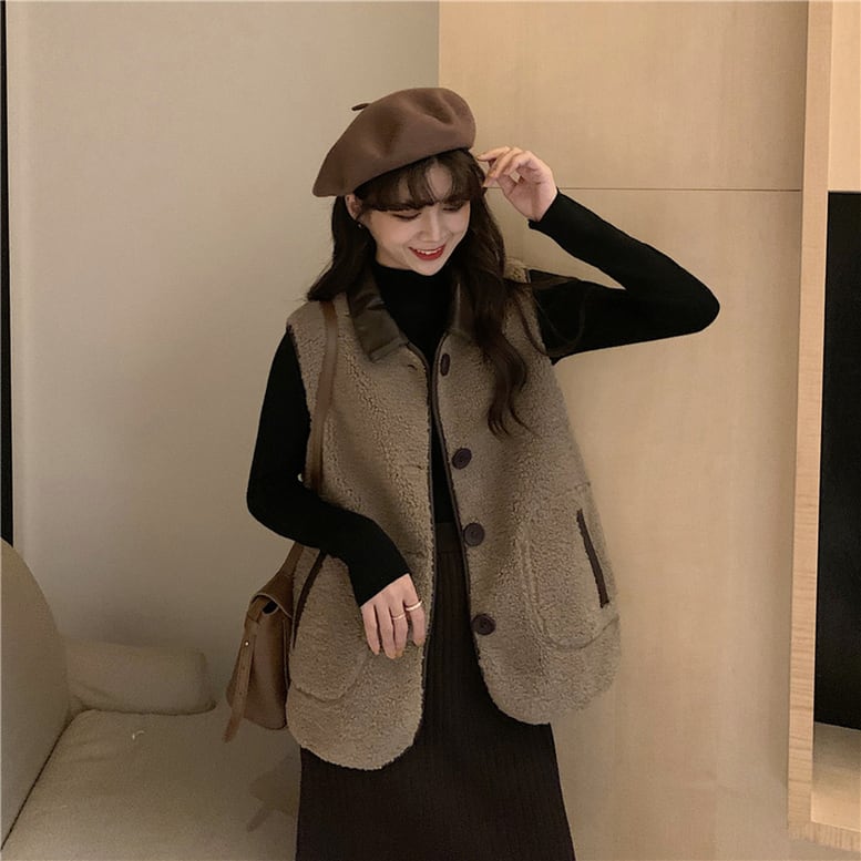 ふわふわのボア素材が可愛いニットベストジャケット