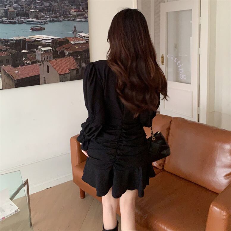 レディース ミニワンピース アシメワンピース タイトワンピース 裾フリル Vネック カシュクール 長袖 バルーンスリーブ 袖口フリル ハイウエスト ミニドレス 重ね着風 ティアード シック 黒 ブラック 大人可愛い きれいめ 上品 エレガント フォーマル ガーリー 春 夏 秋 冬 二次会 お呼ばれ オフィス OL 通勤 学生 通学 デート お出かけ パーティー イベント 女子会 休日 体型カバー 美脚 モテ 普段使い 定番 トレンド ゆったり インスタ映え モード系 大人女子 シンプル おしゃれ