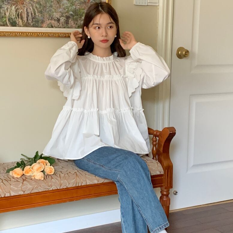 フリルたっぷりのデザインが可愛いスモックトップス