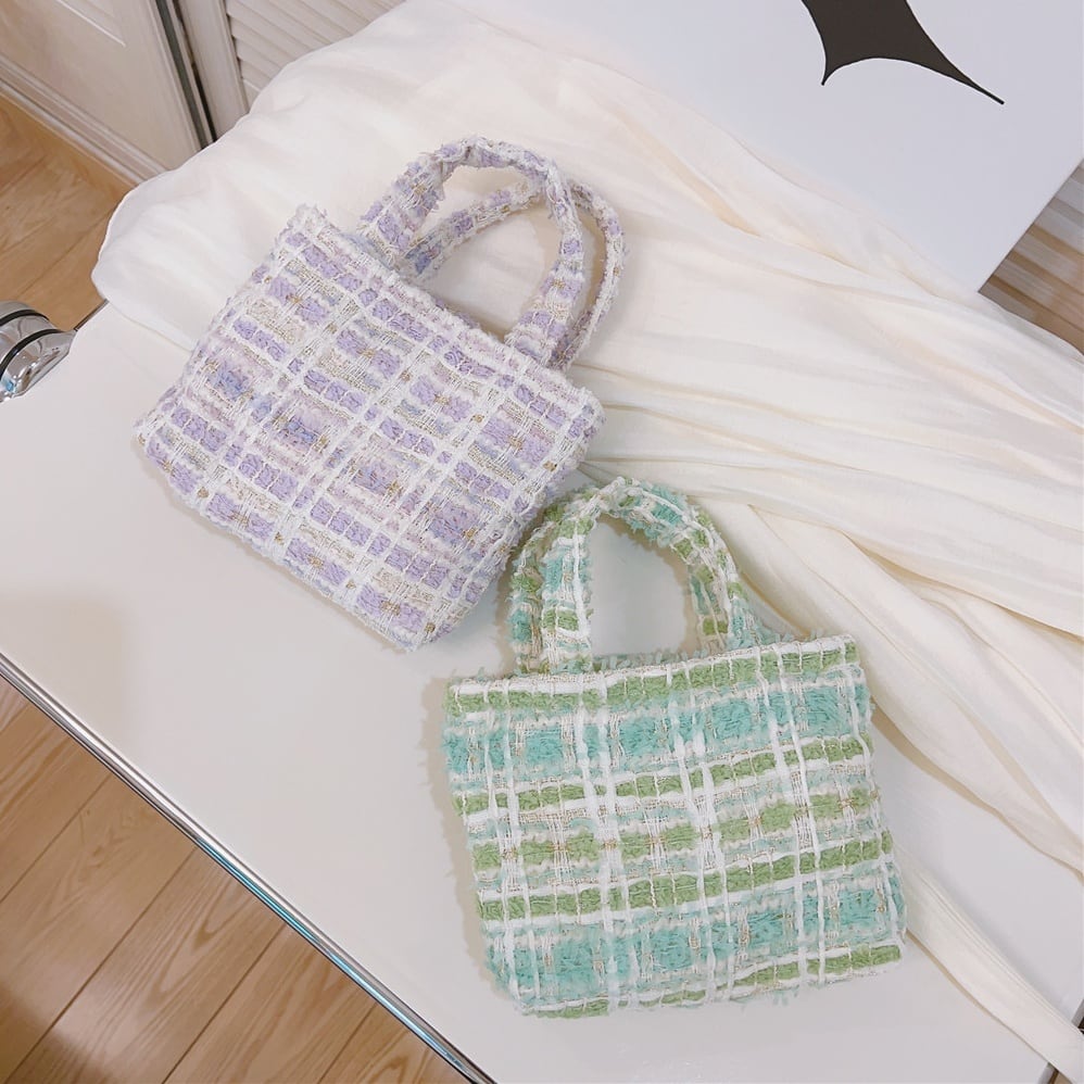 2color レディース バッグ レディースバッグ ミニバッグ ハンドバッグ 手持ち サブバッグ 小物入れ アクセサリー入れ ツイード スクエア型 パステルカラー 小さめ 大人ガーリー フェミニン 大人カジュアル カジュアル ライトパープル ライトグリーン お洒落 春夏 春 秋冬 秋 冬 ママ ママコーデ 20代 30代 40代 デート お出かけ 散歩 普段使い 韓国 トレンド かわいい 可愛い 大人 大人女子 大人かわいい 大人可愛い 通勤 通学 学生 旅行 海外旅行 定番 インスタ映え 存在感 定番