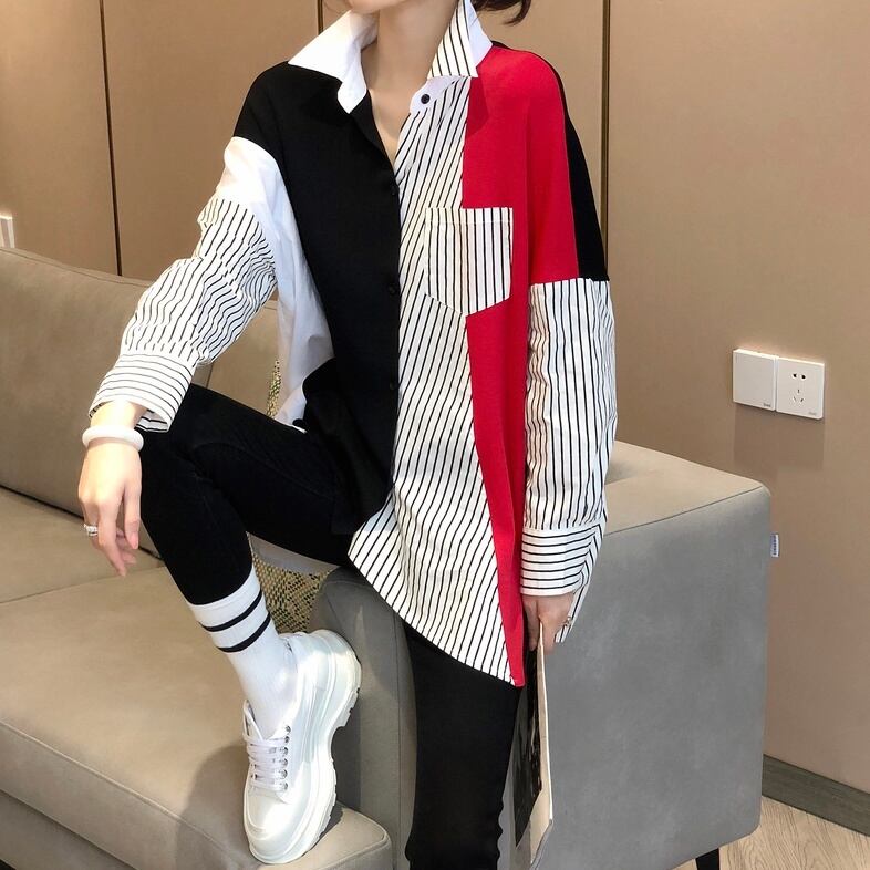 2color レディース トップス シャツ デザインシャツ 配色切り替え 無地 ストライプ柄 袖あり 長袖 メンズライク ボーイッシュ 大人カジュアル カジュアル ストリート レッド グリーン お洒落 春夏 春 秋 ママ ママコーデ 20代 30代 40代 デート お出かけ 普段使い 韓国 トレンド 可愛い 大人 大人女子 大人可愛い 通学 学生 女子会 着回し デイリー こなれ感 レイヤード ゆったり 体型カバー 定番 インスタ映え 個性的 きちんと感