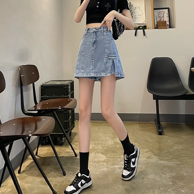 3color レディース デニムスカパン ミニスカート デニムスカート スカパン デニム スカーチョ キュロット スカンツ スリット ミニ丈 インナーパンツ ハイウエスト 水色 青 白 ライトブルー ブルー オフホワイト ハリ感 オシャレ シンプル 可愛い キレイめ 上品 フェミニン マニッシュ カジュアル 春 夏 秋 冬 デイリー おでかけ アウトドア 普段着 コンパクト スマート 細見え スタイルアップ 高見え 新鮮 美脚見え 脚長 動きやすい 体型カバー インスタ映え トレンド